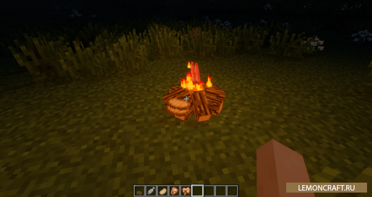 Мод Simple Camp Fire добавляет в игру костер на котором вы сможете приготовить себе пищу намного быстрее чем в печи. На этом костре еда будет готова в течении 3-8 секунд. Сам костер сделан очень качественно и впишется в ваш мир идеально. Для того, что бы приготовить пищу на костре, нужно взять сырой продукт в руку и с помощью правой кнопки мыши кинуть его в костер.