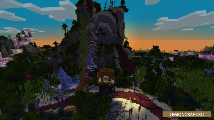 Мод на все биомы в одном мире World Blender позволяет собрать все существующие биомы и соединить их все в одном мире. После установки мода вы сможете наблюдать структуры из энд мира, подземелья в новом измерении, например деревья и дорожки будут из нижнего мира, а деревья из энд мира. Рядом с простыми деревьями будут торчать из земли глыбы льда.